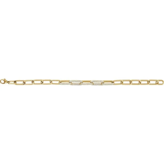 14K Yellow 1 1/2 CTW Lab-Grown Diamond Paperclip-Style 7" Bracelet