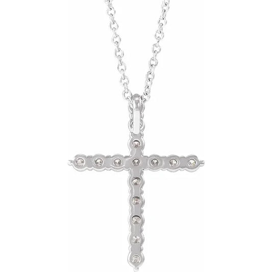 14K White 1/2 CTW Lab-Grown Diamond Cross 16-18" Necklace